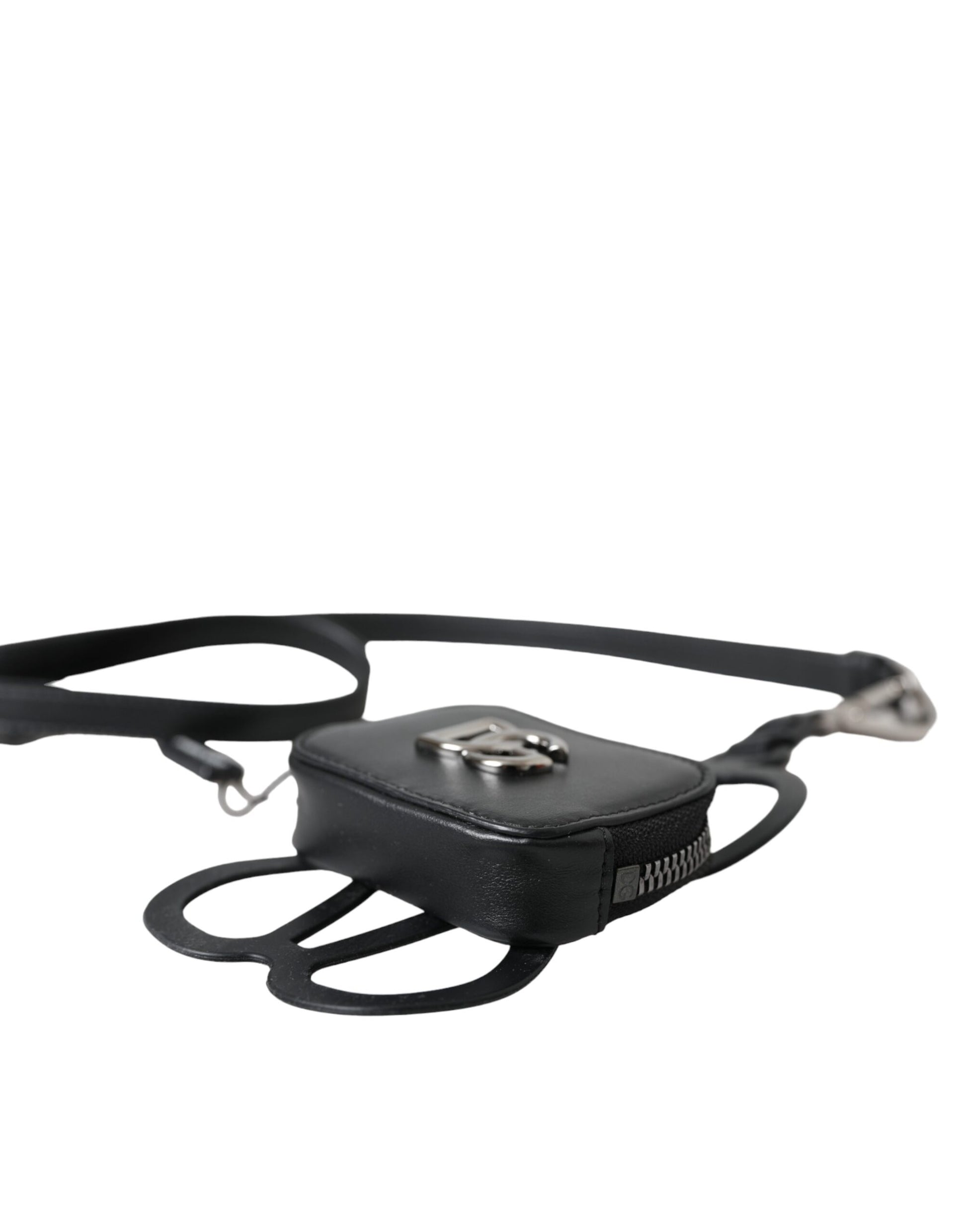Dolce & Gabbana Black Calfskin Leather DG Logo Coin Purse Lanyard Wallet