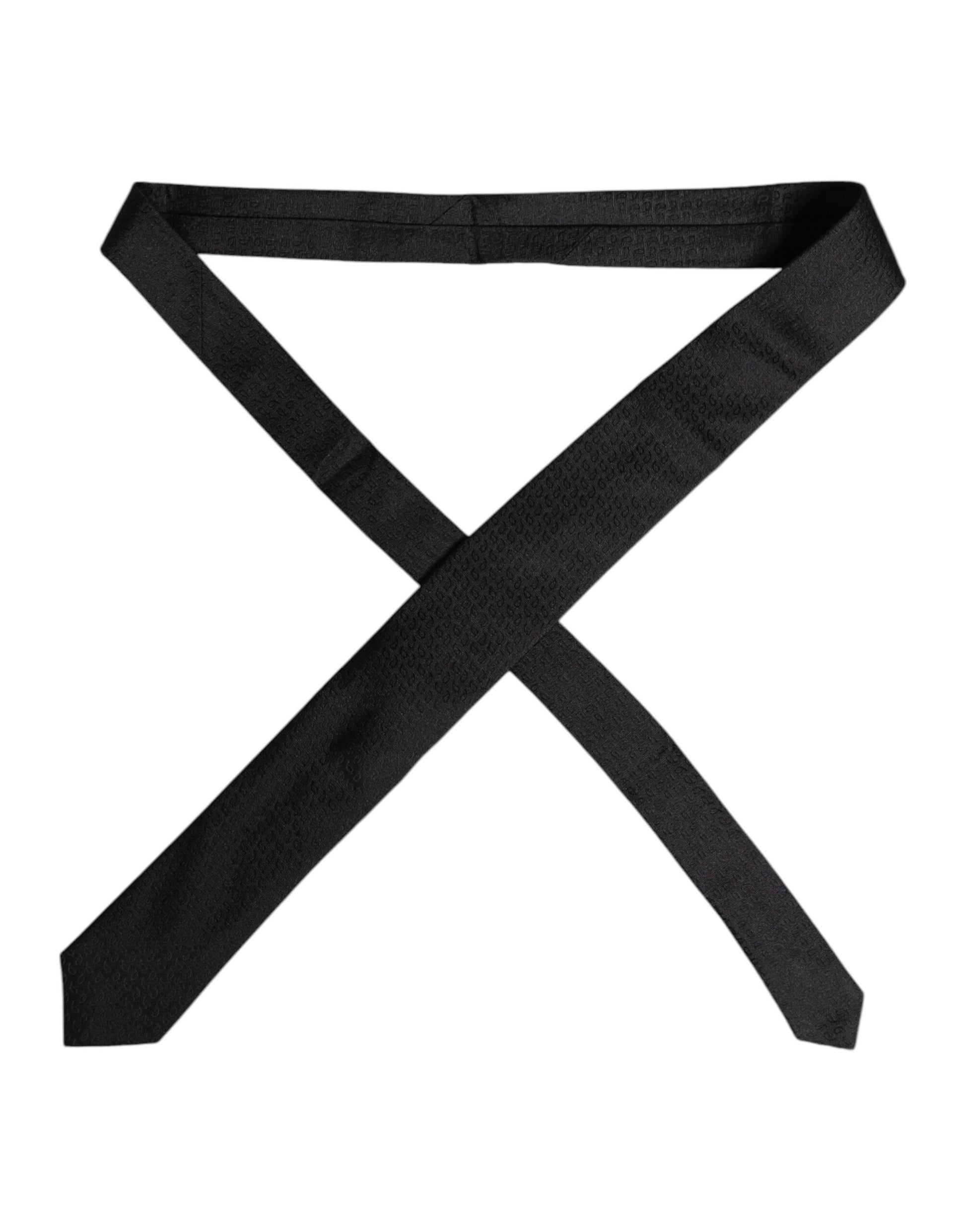 Dolce & Gabbana Black Patterned Silk Adjustable Necktie Tie