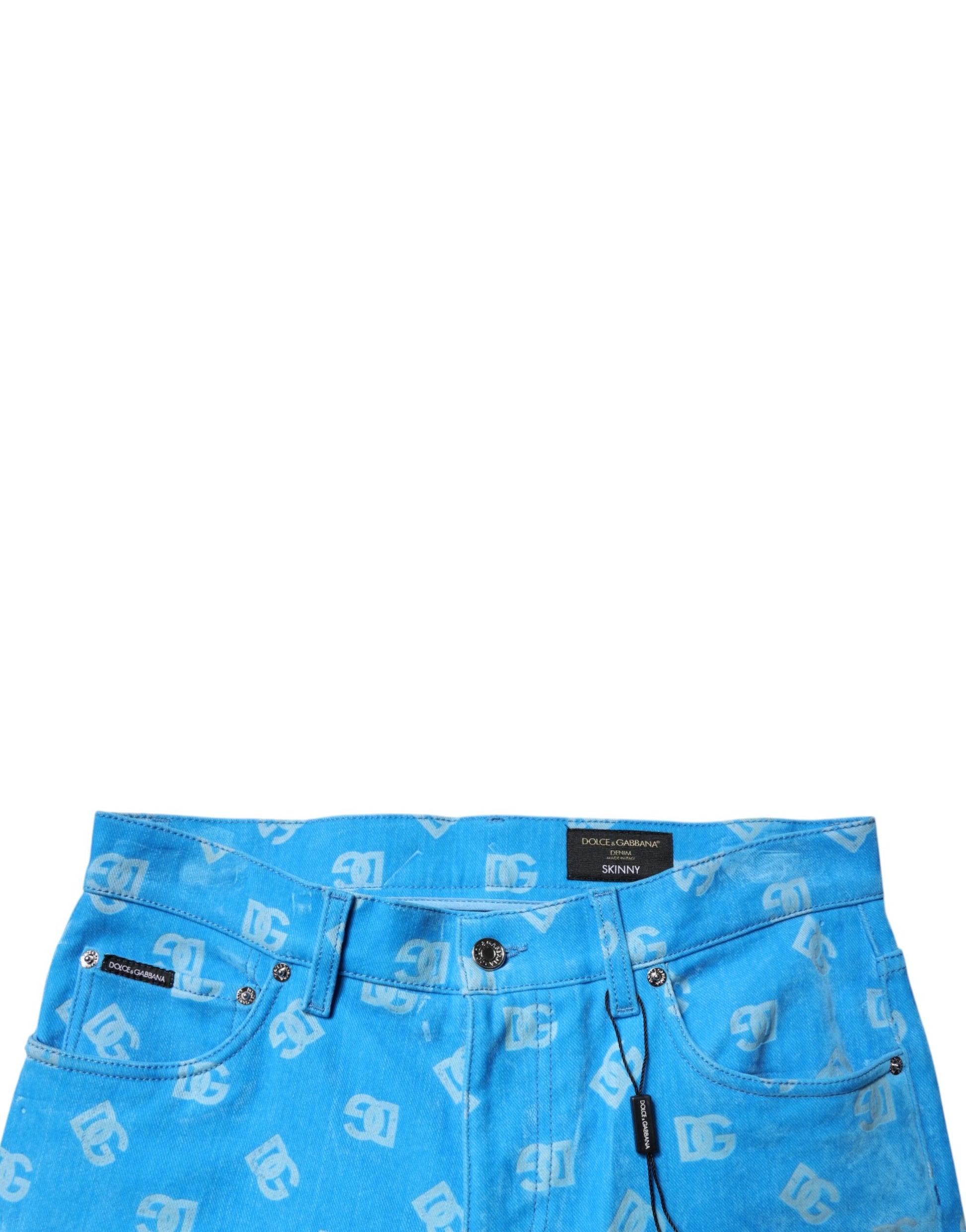 Dolce & Gabbana Blue Logo Monogram Cotton Skinny Denim Jeans
