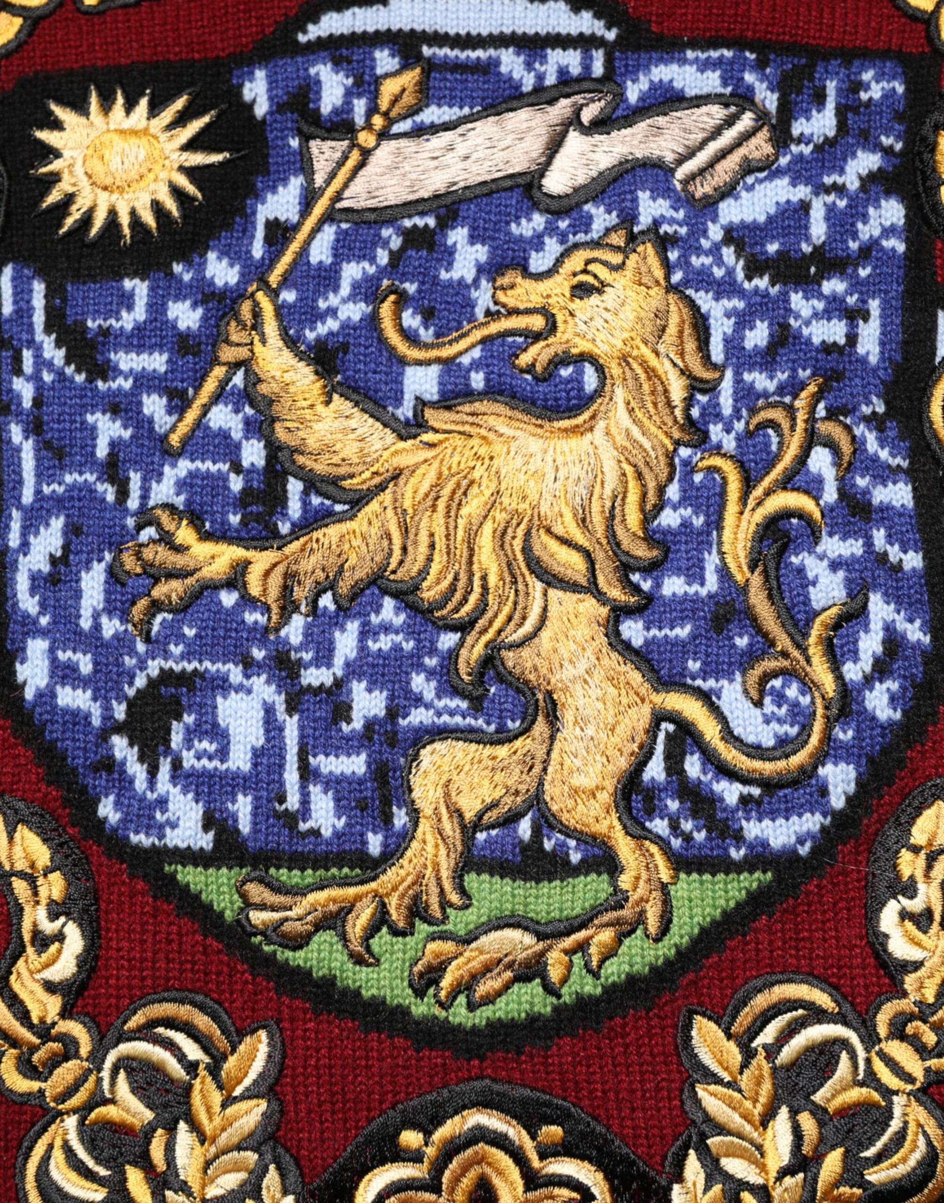Dolce & Gabbana Burgundy Cashmere Lion Crest Pullover Sweater